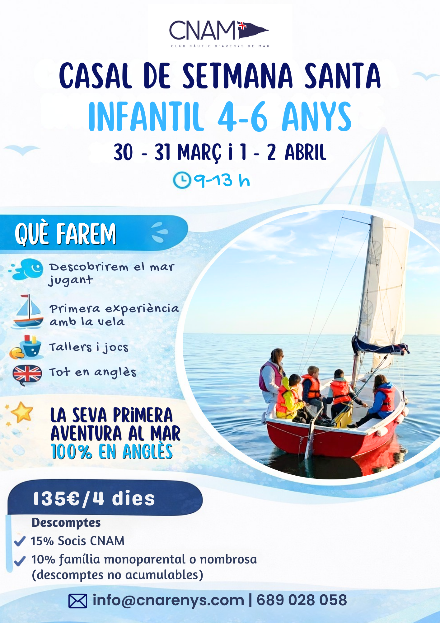 Més informació i reserva info@cnarenys.com