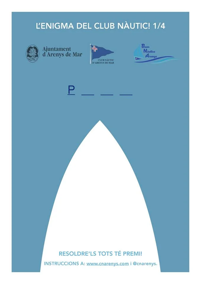 Resol els quatre enigmes que et proposem cada mes. Els podràs trobar penjats pel poble d’Arenys de Mar i a les nostres xarxes socials, incloent el nostre web. Si a finals de cada mes has sabut resoldre els quatre enigmes vine al Club Nàutic a canviar les teves respostes correctes per un 2x1 en lloguer de caiac o paddle surf a la Base Nàutica.