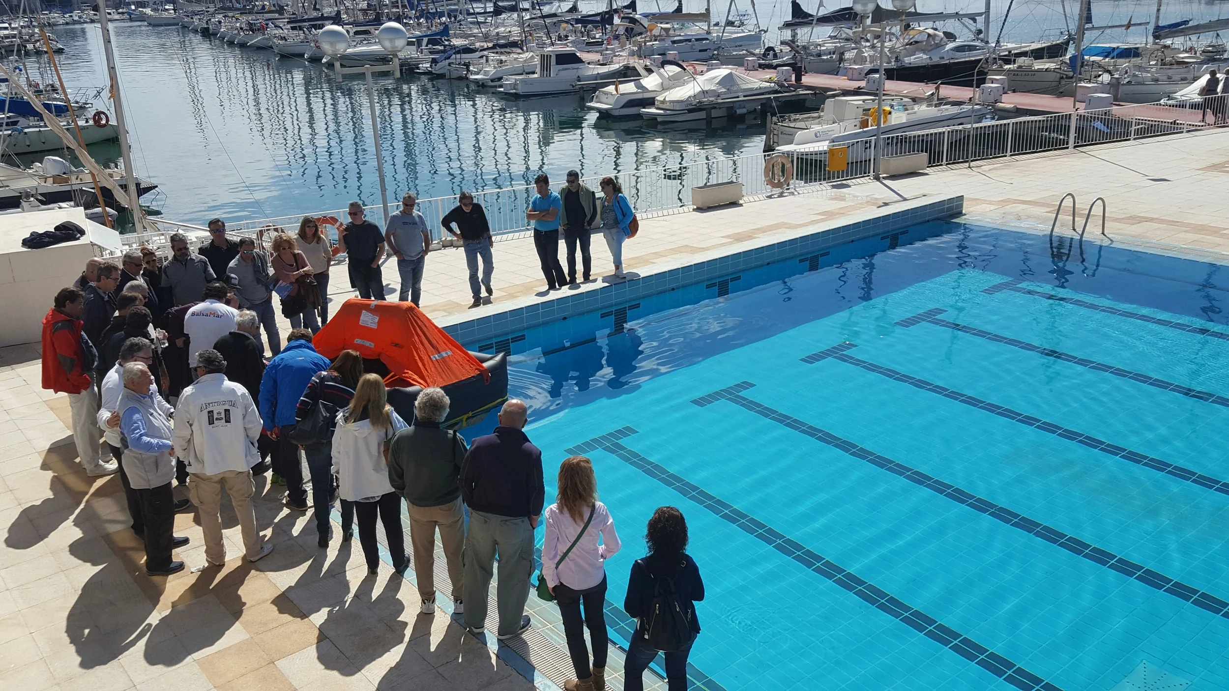 La xerrada de Balsamar va començar a les 10 del matí i els membres de l’equip van explicar com s’han d’utilitzar els productes de seguretat. La sessió, que estava adreçada a navegants habituats però també als més novells –seguint amb l’esperit que persegueix el Trofeu Timoner–, va començar al Saló Social i va acabar a la piscina, on es va activar un bot salvavides per fer-ne una demostració.