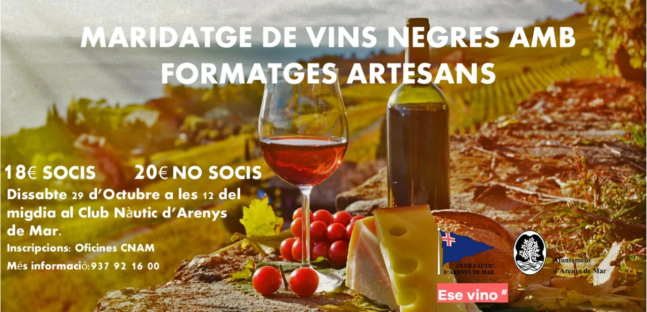 El dissabte 29 d’octubre a les 12:00h es celebrarà un maridatge de formatges artesans i vins negres a les instal·lacions del CNAM, en el Saló Social del Club Nàutic d’Arenys de Mar.
